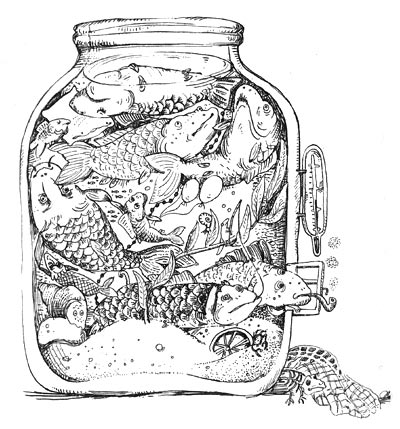 — Та-а-ак! — повторил он еще более угрожающим тоном, обнаружив на подоконнике вонявшую трехлитровую банку. Банка была доверху наполнена водой, и в ней, как в магазине живой рыбы, вяло шевелили плавниками и тяжело открывали рты больше десятка крупных рыбин.