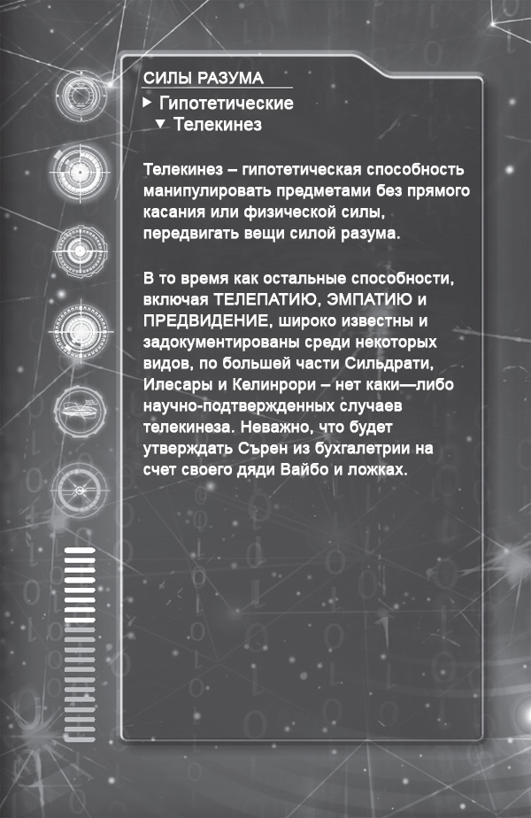 Мельком оглядев комнату за его спиной, успеваю заметить сгорбившегося в кресле Финиана с рассеченной бровью, из которой вытекает бледно-розовая кровь. В невесомости плавают еще тела, стены обуглены от выстрелов лазера.