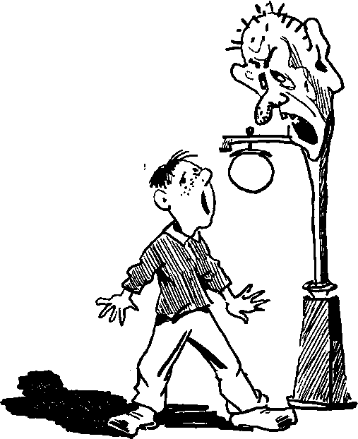— Это что пришел за урод: во всю голову рот, глаза торчком, нос крючком, вместо ног — уши. Берегись! Загрызу!