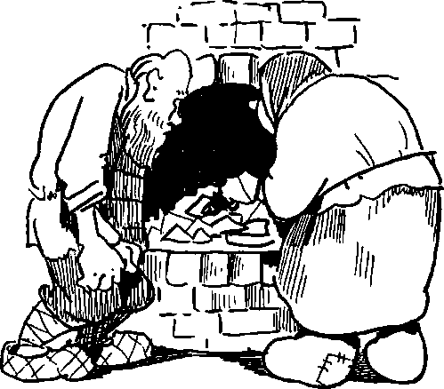 Бука заворчал, гусей разогнал. Сидит сердит. Идет мальчик с вершой. Бука грозно поглядел, закряхтел, толстыми губами зашлепал, злыми глазами захлопал. Мальчик говорит: