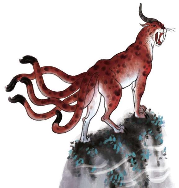 В трёхстах ли к западу от горы Чжанъэ стоит гора Иньшань. Там берёт своё начало река Чжоюй, которая на юге впадает в озеро Фаньцзэ; в водах той реки много узорчатых ракушек. Там живёт зверь Тяньгоу, внешне похожий на бенгальскую кошку; у него белая голова, его крик похож на звук «лю-лю», которым он обороняется от зла.