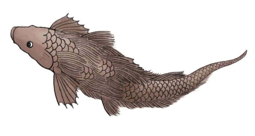 В пятистах ли к востоку от горы Гуаньсян стоит гора Цзишань. На горе много золота, а под горой – охры красноватого цвета. Там берёт своё начало река Хэйшуй (1) и затем на юге впадает в море. В водах этой реки живёт рыба Туань, похожая на карася, у неё поросячий хвостик, и кричит она словно поросёнок. Где она появляется, там случается большая засуха.