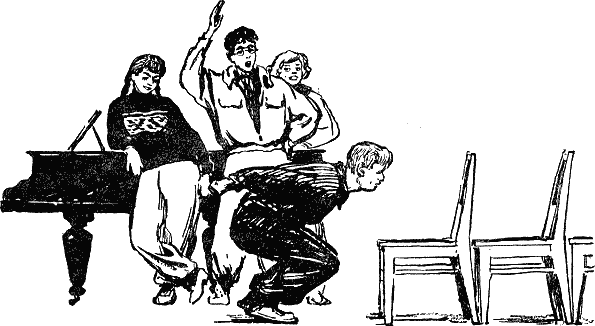 Кто-то из молодых людей предложил составить вместе два стула. Однако желающих взять прыжком такую преграду не нашлось.